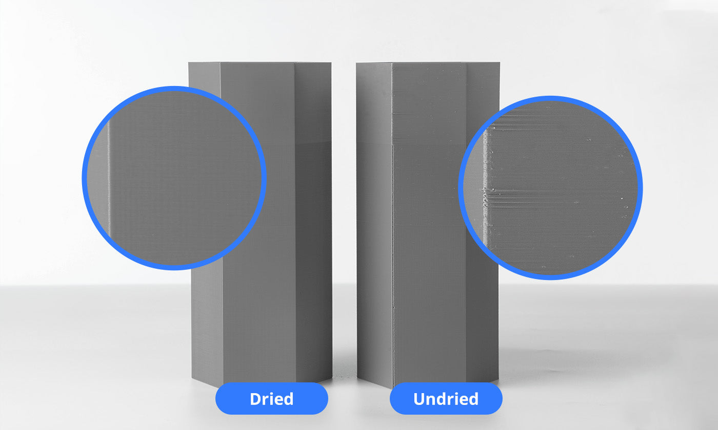You must dry PETG filaments before printing and store them in a moisture-controlled environment to prevent air bubbles during printing.